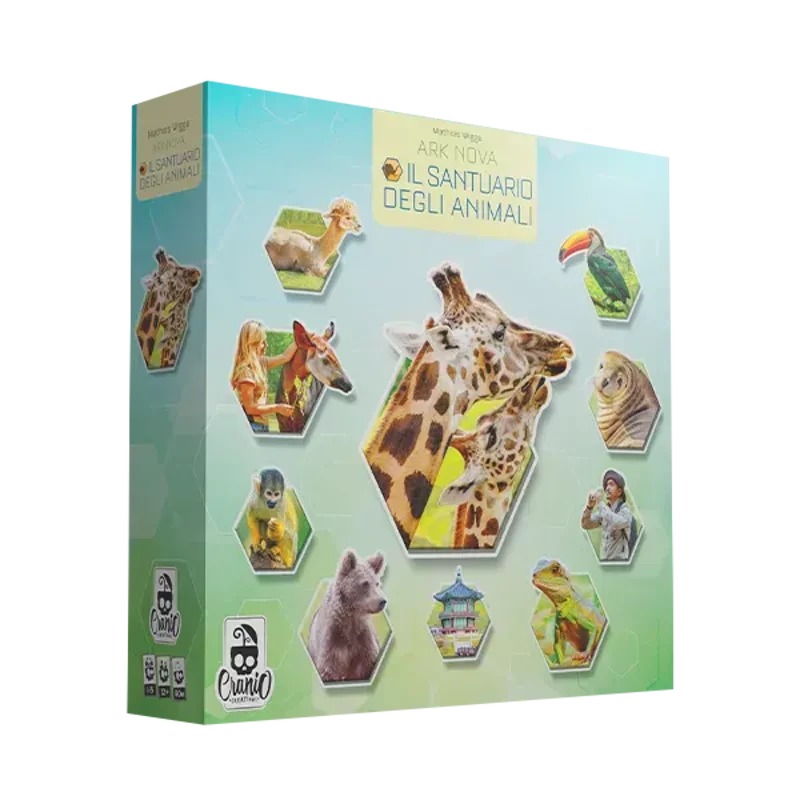 Il Santuario degli Animali è basato sul bestseller mondiale Ark Nova, ma modifica e semplifica molte delle meccaniche del gioco originale, in modo elegante e sorprendente. 1-5 giocatori / 12+ / Cranio Creations
